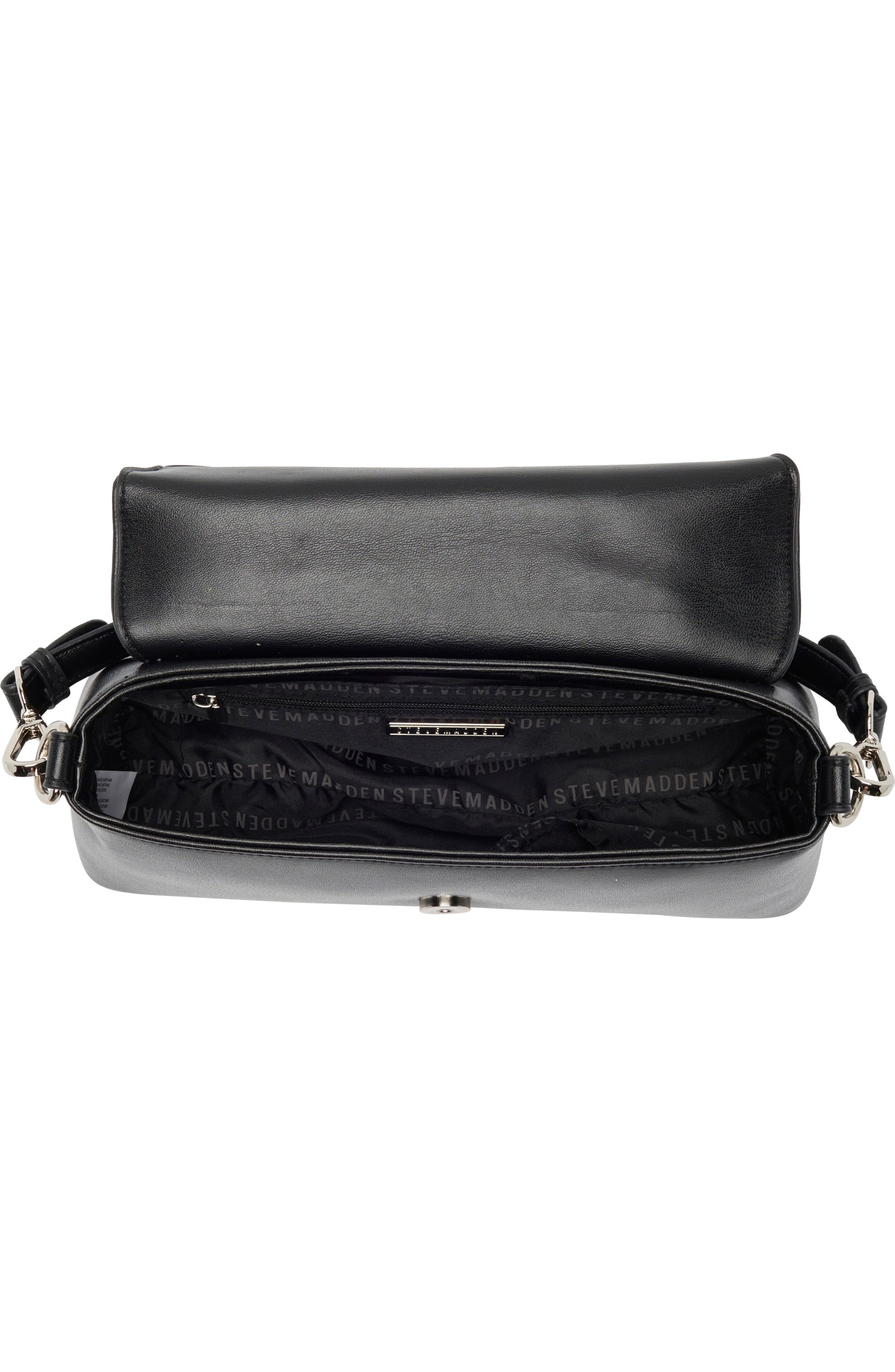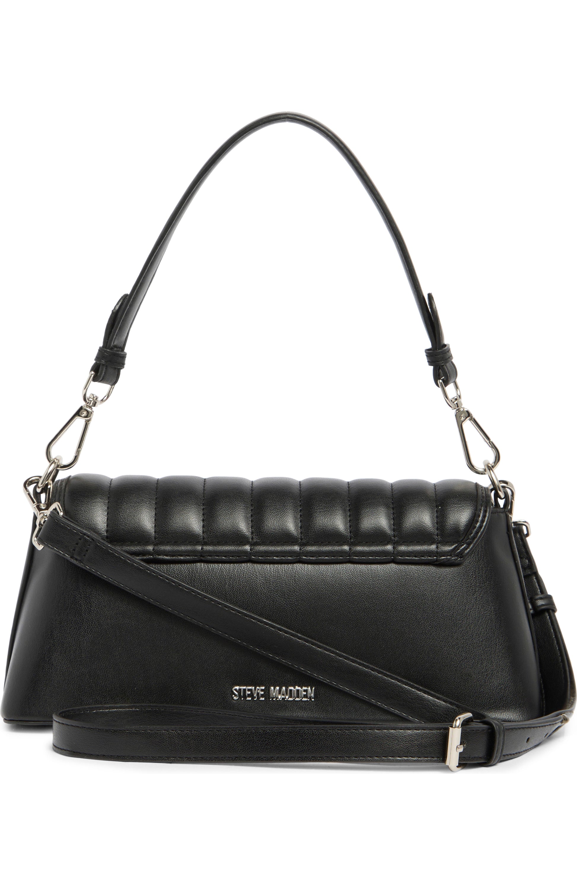 This satchel features a bold oversized buckle and a ribbed-stitched flap, designed to make a statement. With an adjustable strap, it offers edgy versatility to match your fearless style.