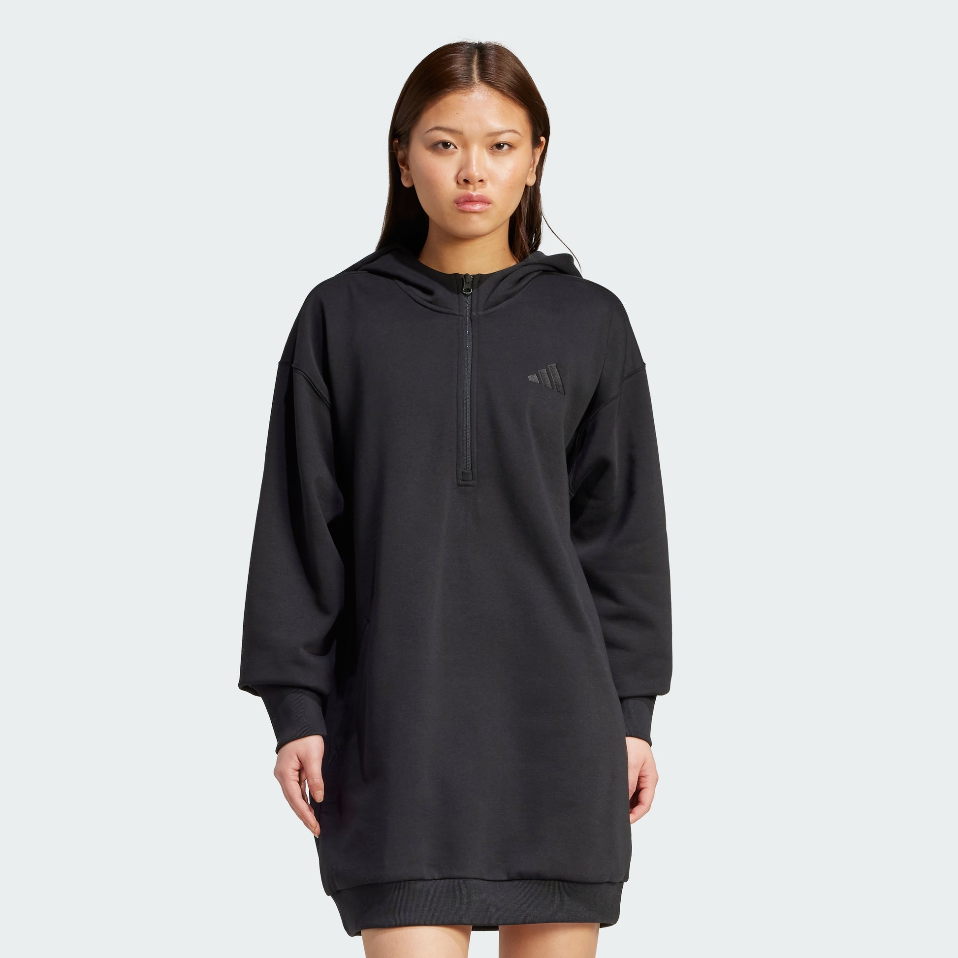 This adidas fleece dress is designed for maximum comfort with a loose fit and soft fabric. It features drop shoulders, extra room to move, and handy side pockets for your essentials. Stay cozy and bold all day.