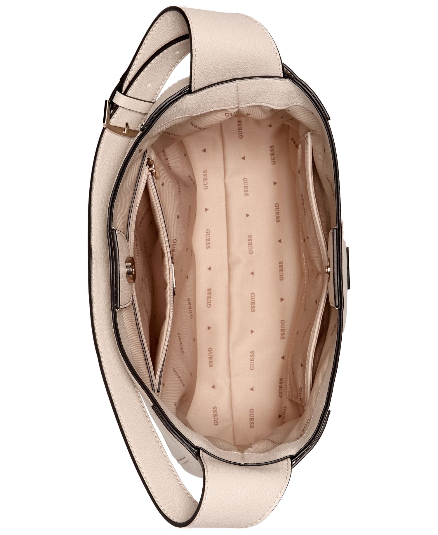 This shoulder bag from GUESS, crafted in a timeless shape, offers the perfect size for daily use and features the signature triangle logo plaque for a bold statement.