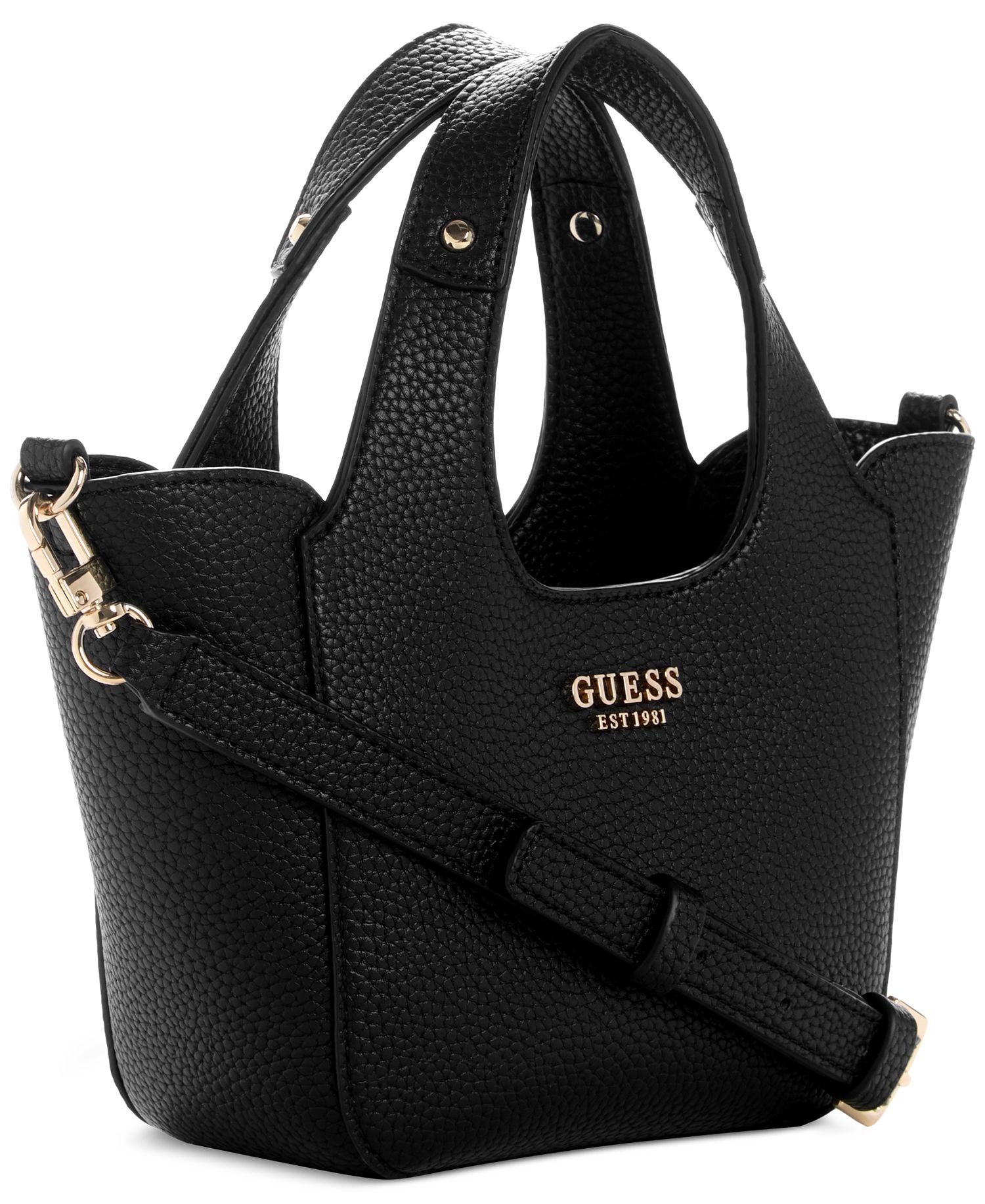 This sleek and edgy tote from GUESS boasts a textured pebbled finish and includes a detachable strap for effortless, hands-free style.