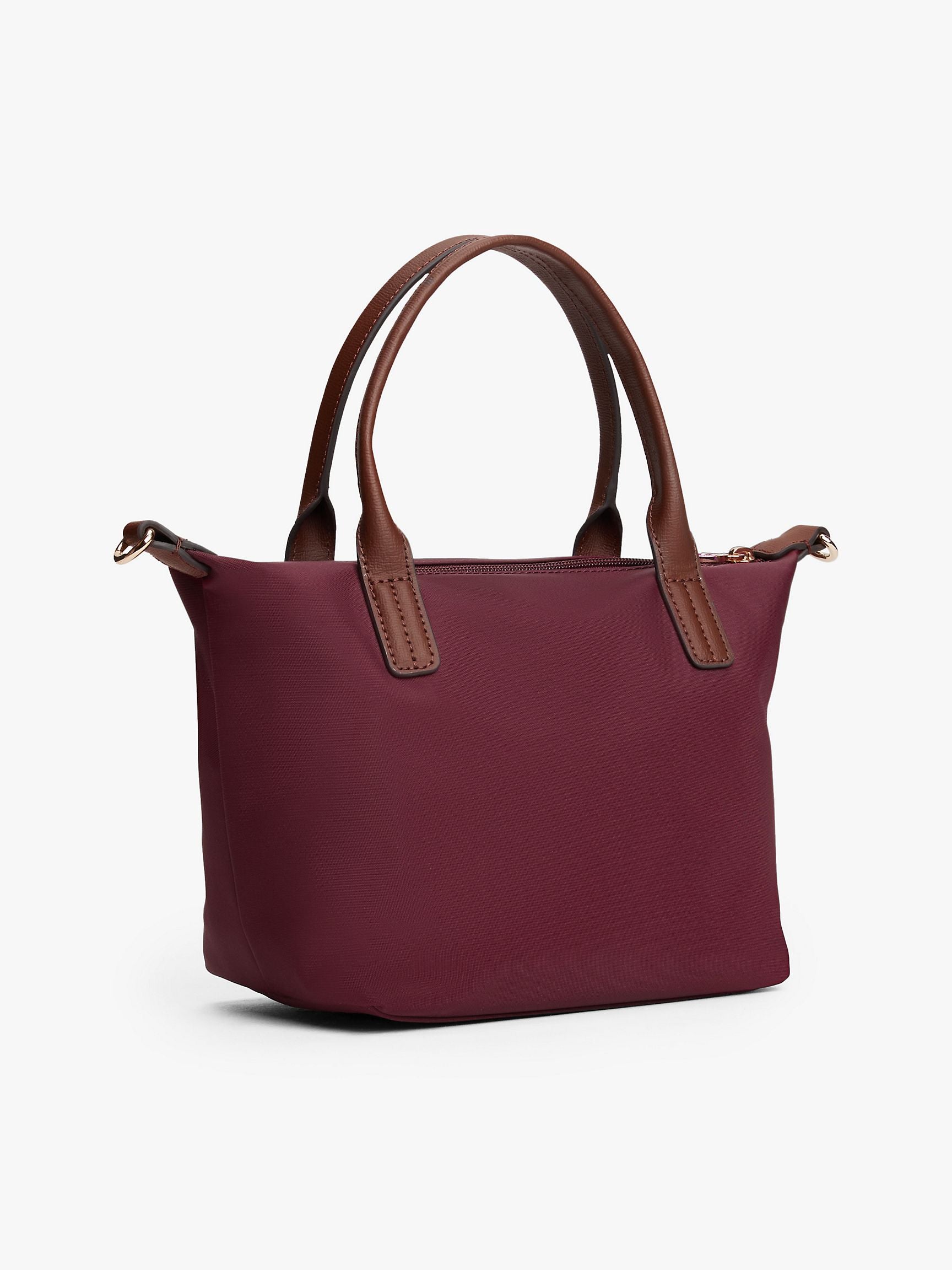 Tommy Hilfiger women's tote crafted to hold your essentials with ease. This functional mini tote features leather accents and iconic signature stripes for a distinctive look. Constructed from nylon, it offers durability, lightweight convenience, and effortless cleaning.