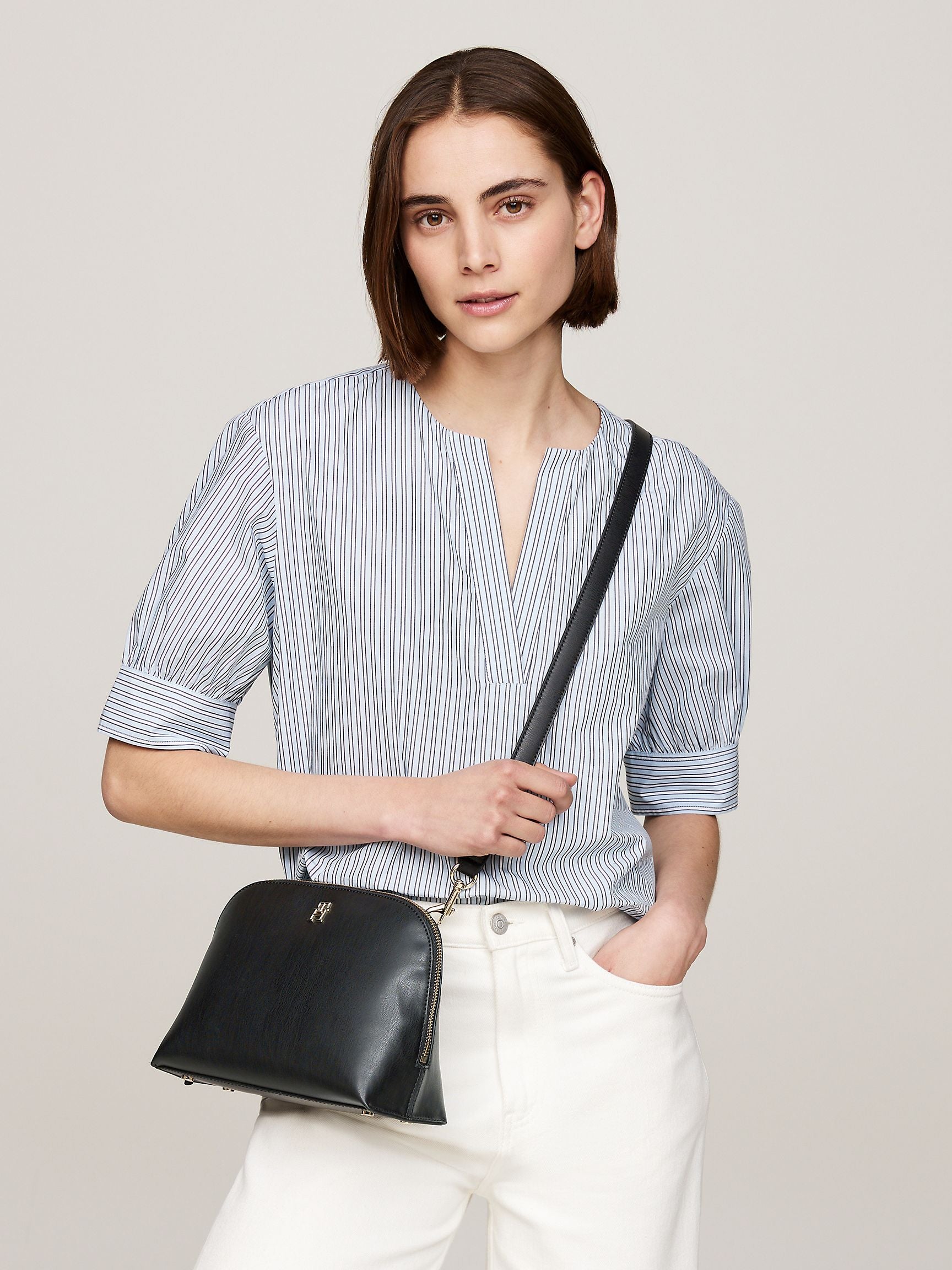 - Zip closure, removable adjustable crossbody strap.