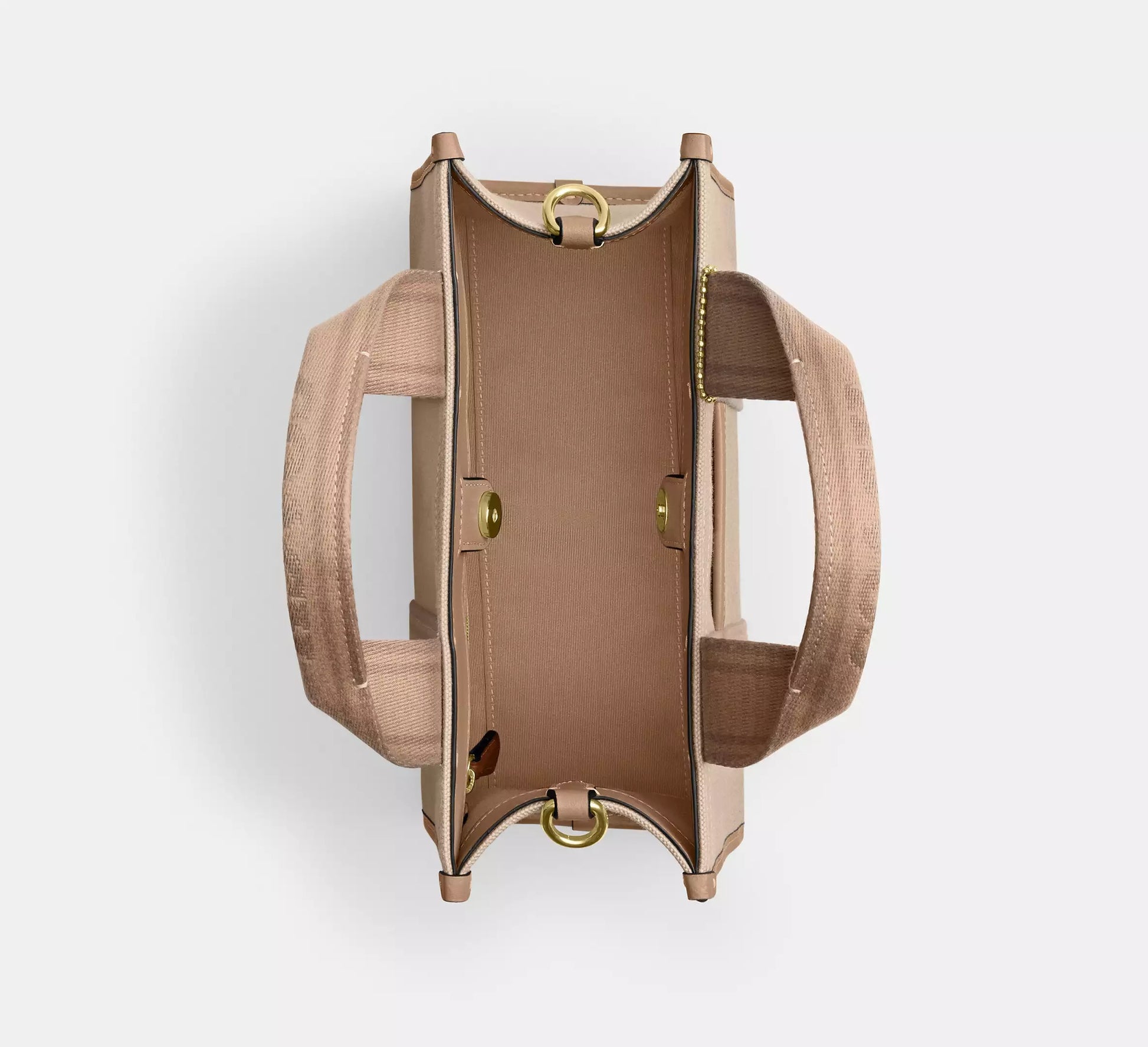 The Smith Tote Bag 24 in Dark Natural Multi is a bold, compact companion for your day. Made from sturdy canvas and sleek leather, it fits essentials like the iPhone 16 Pro Max and a book, plus has a quick-access outer pocket. Its detachable strap lets you switch up your look, making this mini tote both fearless and functional.