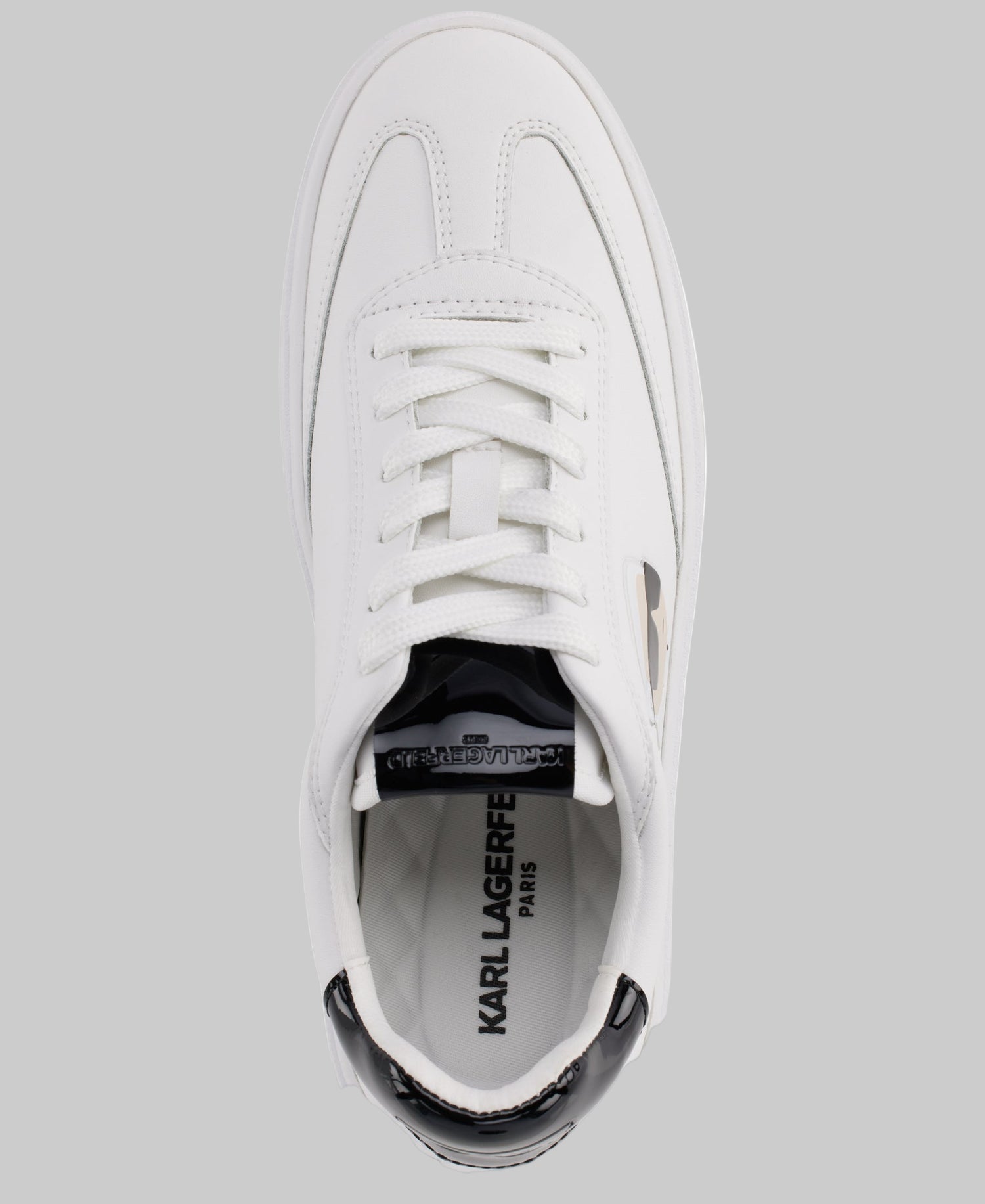 The Sumava Lace Up Sneaker by Karl Lagerfeld Paris makes a bold statement with its distinctive appliqués, showcasing a signature edge on sleek, smooth leather.