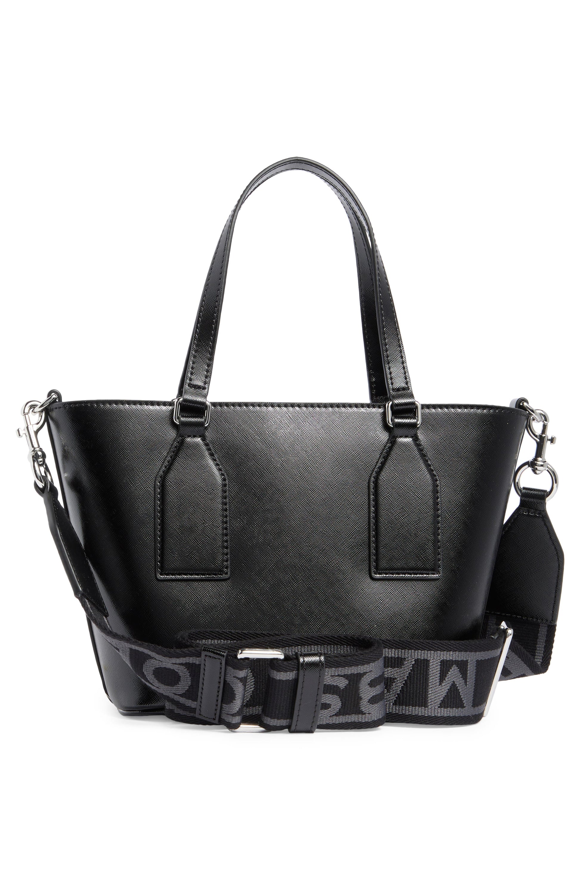 Sporty logo-embroidered webbing accents this compact tote, perfectly sized for your everyday must-haves. Crafted from easy-care faux leather, this roomy design is set to become your bold go-to accessory.