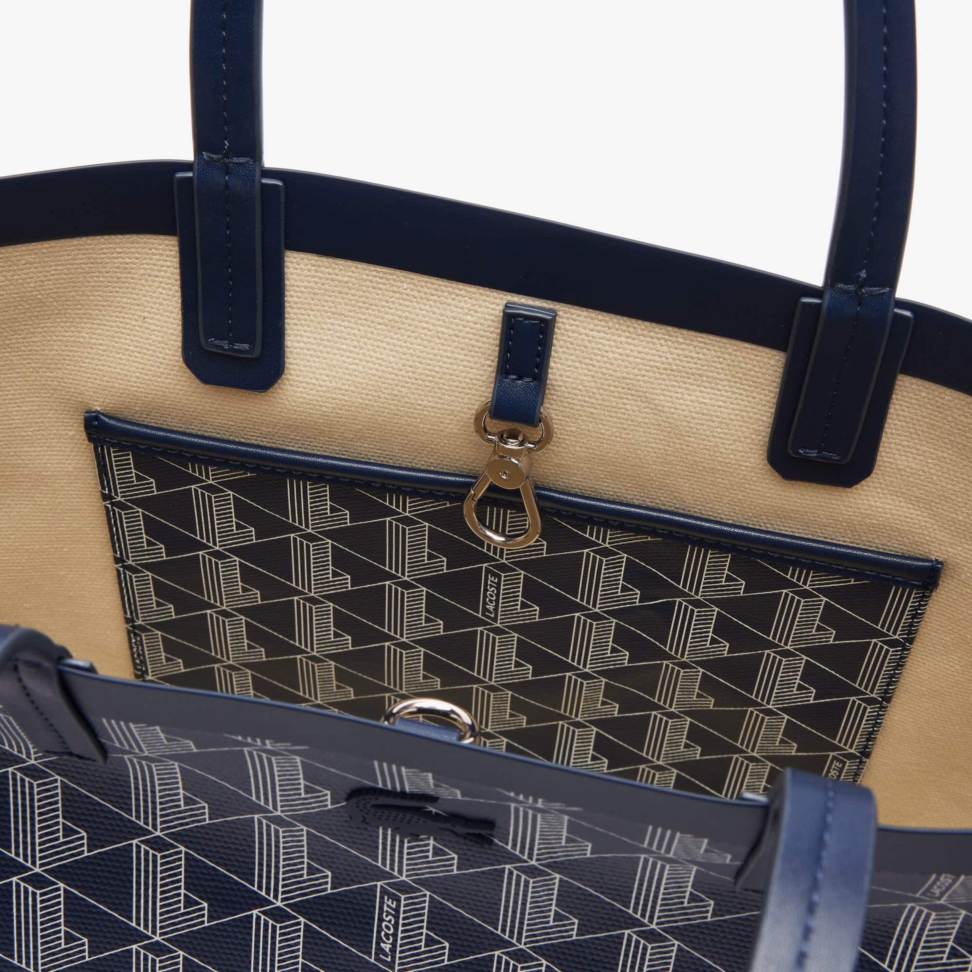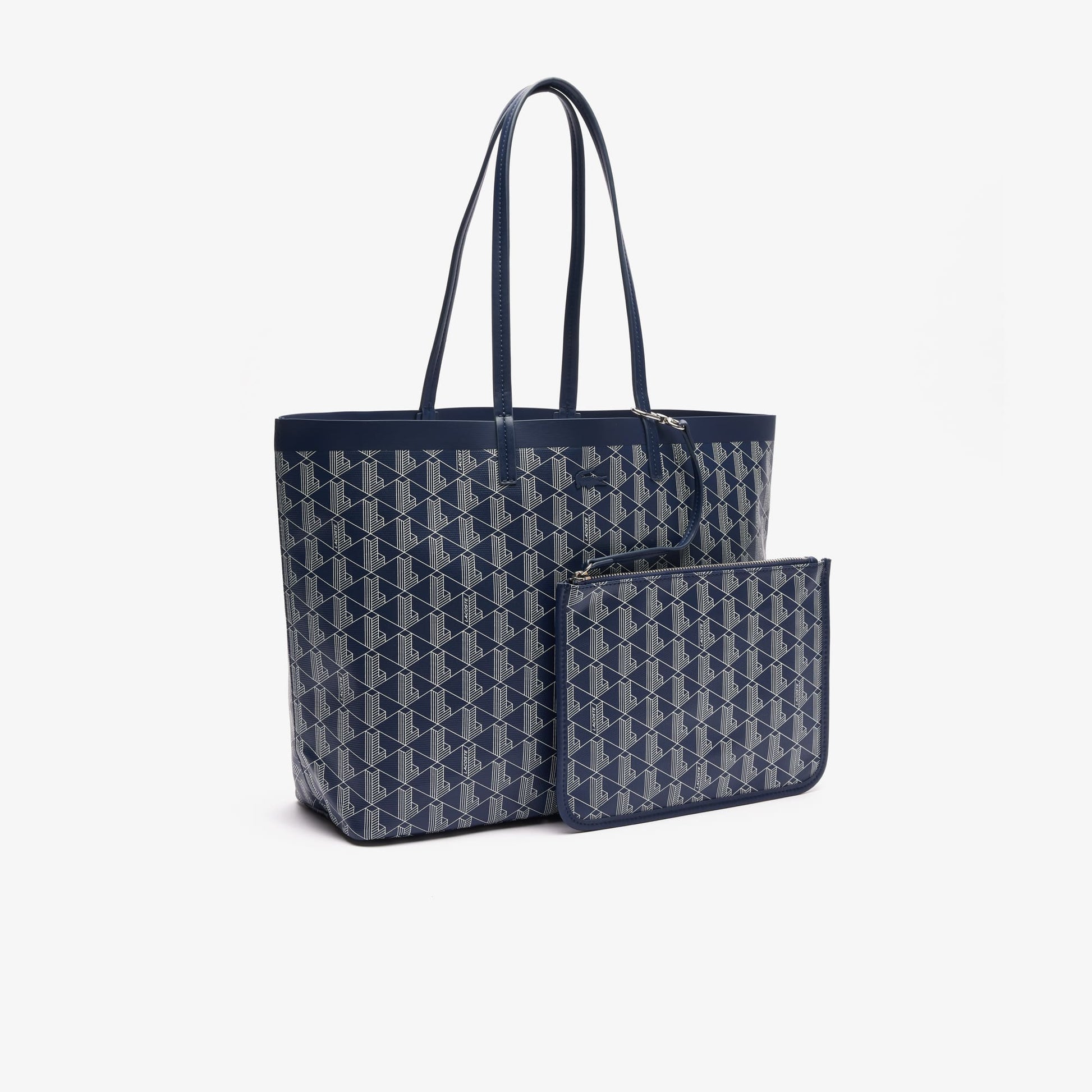 This canvas tote is distinguished by the signature Lacoste monogram, offering a refined and striking appearance. Equipped with two generous handles, it can be comfortably carried by hand or over the shoulder. Spacious enough to fit a 17” laptop, it also includes a discreet patch pocket and a detachable zipped pouch for practical storage.